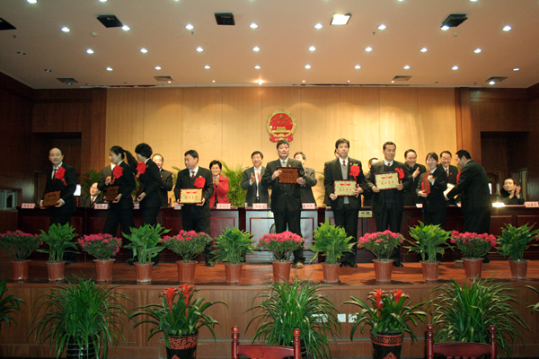 会上,党组成员、政治部高国爱主任首先宣读了省高院关于表彰省级先进集体和先进个人的有关决定、市中院表彰先进集体和先进个人的有关决定、市中院表彰优秀廉政监督员的有关决定。在宣读表彰通报后,大会组织了隆重的颁奖仪式。在鼓舞人心的奏乐声和全体人员热烈的掌声中,市委和中院领导为受表彰的先进单位和个人代表颁发了奖牌、证章和证书。