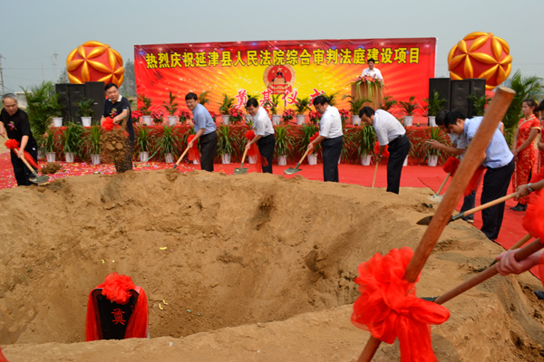 2012年9月19日上午,延津县人民法院综合审判法庭建设项目正式奠基。新乡市中级人民法院党组书记、院长王伯勋、新乡市中级人民法院党组副书记、常务副院长李绍君、新乡市中级人民法院党组副书记、副院长李猛、新乡市发改委副主任王雁伦、延津县委书记李刚、延津县政府县长祁文华、延津县人大常委会主任李跃建、延津县政协主席王宝震、延津县委常委、政法委书记亢若敏、延津县委常委、常务副县长秦保建和延津县法院党组书记、院长朱命国等领导出席奠基仪式。有关部门负责人及施工方、监理方代表也参加了奠基仪式。