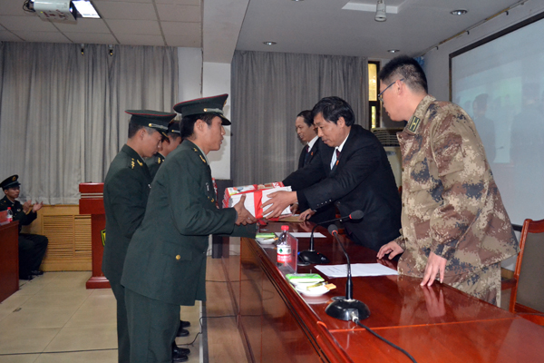 为切实开展司法拥军,提高广大官兵的法律意识,维护军人军属的合法权益,2012年11月10日上午,河南省辉县市法院刑事、民商事等各业务庭一行十人在法院党组成员、副院长王希刚同志带领下,来到驻辉某部队,开展“送法进军营”活动。