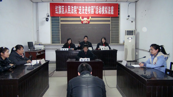 自开展“送法进校园”活动以来,红旗区法院高度重视,通过开展“院长、法官进校园讲授法制课”“一校一法官”等活动方式落实该项活动。近日,红旗区法院结合“法院开放日”活动,邀请学生参观并参加模拟庭审活动,进一步加强司法活动与青少年法治教育之间的密切关系。截止目前,共有200余名学生到法院参观并参加模拟庭审,共给3500余名中小学生讲授法制课,收到了良好的社会效果。