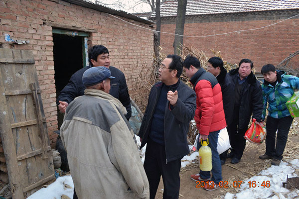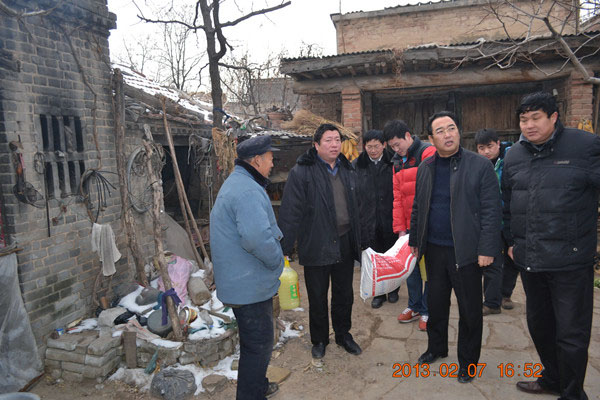 2013年2月7日,在当地村支书的带领下,朱院长一行人来到困难户的家中,为他们送去慰问品,每到一户,朱院长都与困难户进行了亲切交谈,与他们围在一起,关切地询问他们的身体和生活情况,并致以新春问候和祝福。困难群众接过慰问品激动的说:“谢谢法院,一直关心着我们这些困难户,太谢谢你们了。”