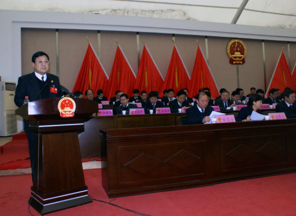2月21日,长垣县第十四届人民代表大会第二次会议的第二天。长垣县人民法院院长李树新在会议上发表重要讲话。图为会议现场照片。
