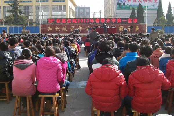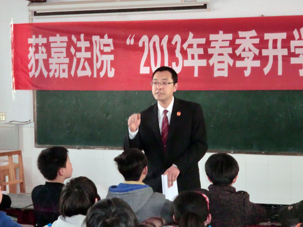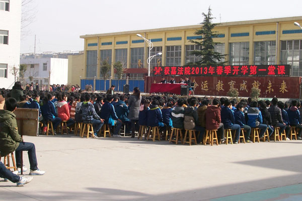 为促进“送法进校园”活动的继续深入开展,使法官参与社会管理能力显著提升,法院保障未成年人合法权益水平显著提高,在校学生违法犯罪率显著降低,加强青少年学生法制教育,提高青少年学生法律意识和观念,3月7日上午,获嘉法院刑事审判庭和民事审判第一庭的法官来到获嘉县第一初级中学,为该校2000多名学生上了春季开学第一堂法制教育课。