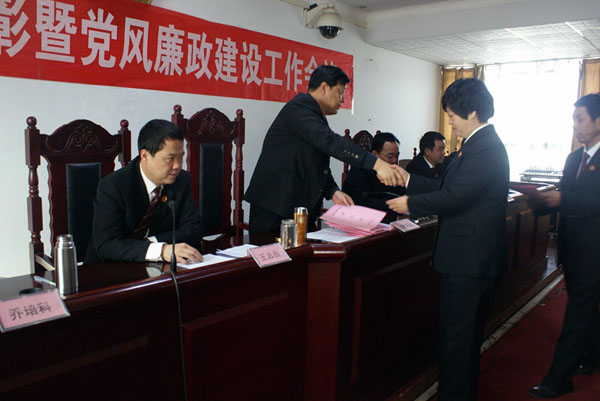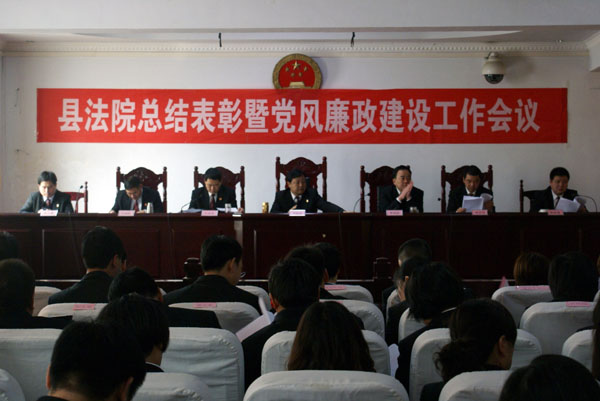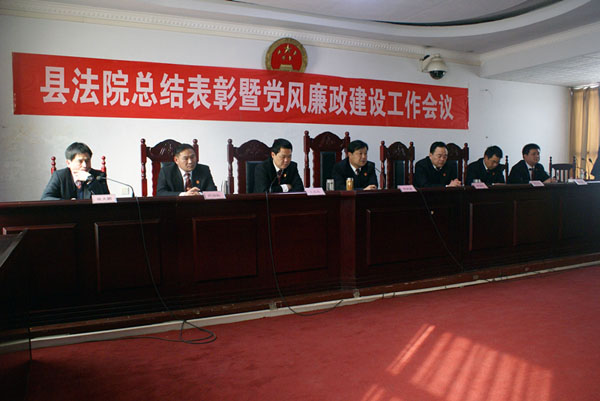 2013年3月15日,长垣县人民法院全体干警着装整齐在三楼会议室召开总结表彰暨党风廉政建设工作会议。