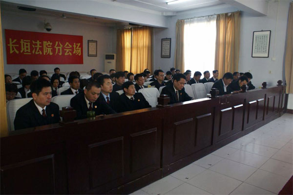 2013年4月7日,长垣县人民法院在院办公楼三楼会议室召开 “新民事诉讼法及最新道路交通事故损害赔偿案件适用法律若干问题的解释讲座”。主讲人为我院民事线主管院长乔培科同志。院党组成员、审委会委员、各业务庭室全体成员整齐着装认真听取乔院长授课。图为会议现场照片。