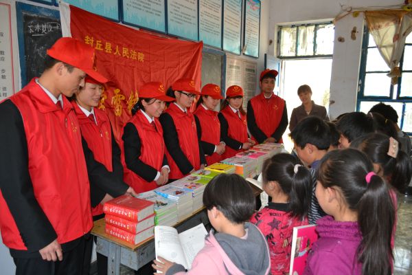 日前,封丘法院10余名青年志愿者带着全院干警的爱心,来到封丘县赵岗镇中心小学开展“学雷锋、献爱心”赠书活动。