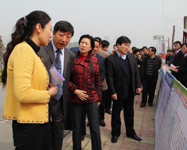 4月24日,阳光明媚,新乡市体育中心门前,牧野区法院院长耿梅红正带领干警们为过往的群众发放宣传单,宣传平安建设,解答群众问题。