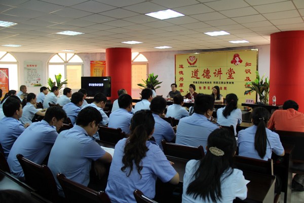 “德才兼备、以德为先”突出强调了道德品质在选人用人中的重要性。近年来,新乡市牧野区人民法院党组始终把干警的道德建设作为队伍建设的一项重要内容,努力建设一支政治素质过硬、职业道德高尚、个人品德优良的干警队伍。“道德讲堂”是该院道德建设的一大重要举措,该院定期邀请先进模范人物在道德讲堂为干警授课,以先进模范人物的真实事迹、感人行动影响和教育干警,为干警树立学习的榜样和目标,不断提升干警职业道德素质和个人道德修养,塑造一支有热心、有爱心、有耐心的司法干警队伍。6月6日,该院邀请全国人大代表买世蕊在“道德讲堂”为全院干警作“人需要帮扶”为题的道德讲课,全院干警倍受感动和鼓舞。
