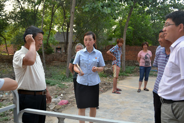 赵欢一行来到南留后村,将两年前挂上的如今在风雨侵蚀下已经模糊不清的驻村法官联系牌摘下,拿着自带的锤子、钉子将崭新的驻村法官联系牌重新钉好,水泥墙不好砸钉,杨英杰、刘小旺不顾手酸麻痛,依然将牌钉牢,他们说“这牌得钉牢,让群众能够在需要的时候看到驻村法官。”赵欢一行对村民这样讲“我是咱村的驻村法官,这牌上有我的联系电话,有啥法律上的问题可以随时给我打电话,我会尽最大力量给村民解决问题,我们不会收取一分钱,请乡亲放心打电话……”并向村民发放原阳县法院自制的法律知识宣传彩页等,得到了村民的夸赞,很多村民当场表示有法律问题时会给驻村法官打电话……等二十四个驻村走访完时,天已经完全黑了。赵欢一行一直也没有顾上吃晚饭,在回来路旁的小食堂吃了点面条,等回到院里已经十点多钟,虽然很累,但是为群众办了实事很值得。