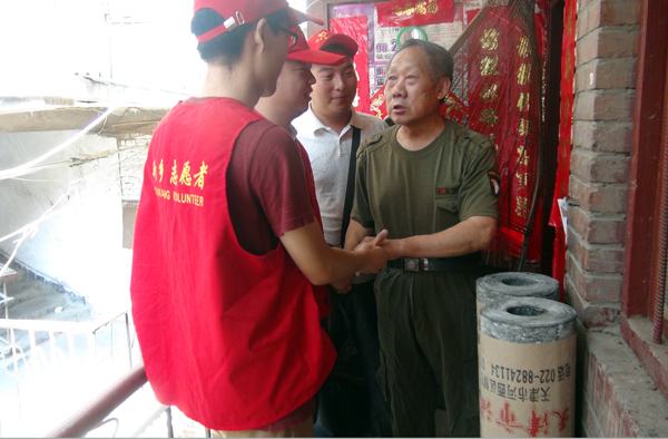 由于近日的不断降雨,本来住房条件就简陋的退休老法官白存凤家中也下起了雨。在了解到这个情况后,红旗区法院党组成员、政治处崔进和办公室王珏立即赶到白老师家中进行慰问。7月30日上午,由青年法官组成的“红旗区法院文明志愿者小分队”又扛着油毡来到白老师家中,为其送上遮风挡雨的小爱心。白老师看到青年法官的到来,激动不已,就出现了开头的一幕。青年法官志愿者们不仅送来白老师需要的油毡,还了解到白老师常年独自一人居住,志愿者们有的陪白老师聊聊天,寻找审判回忆,有的则帮助白老师做起了家务,打扫了房间,欢声笑语,其乐融融,使清冷简陋的房间瞬间温馨热闹了许多。