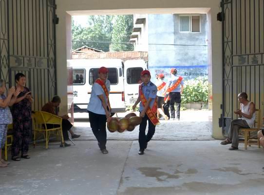 8月7日,烈日炎炎。原阳县法院学雷锋志愿者小分队在党组成员、审委会专职委员宋素琴的带领下,来到城关镇敬老院,为老人们送来了西瓜、面粉等慰问品,大家还细心地帮助老人们打扫卫生、整理被褥、梳头、剪指甲,向老人们献上法院干警的一片爱心。