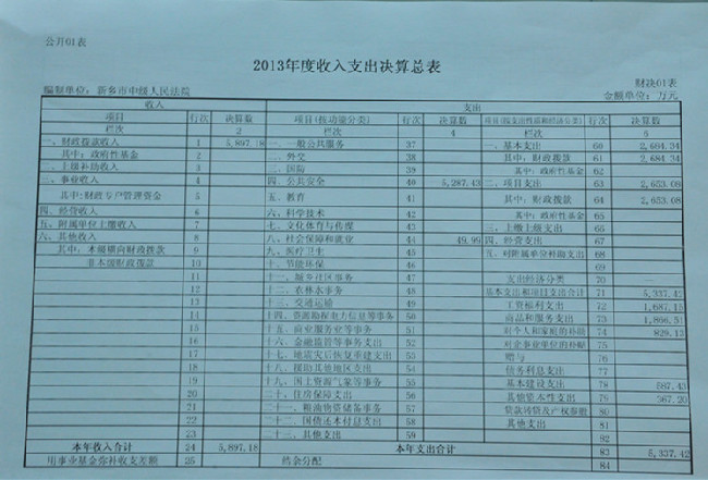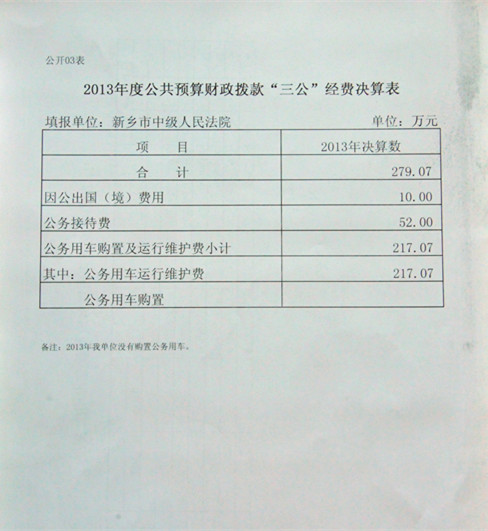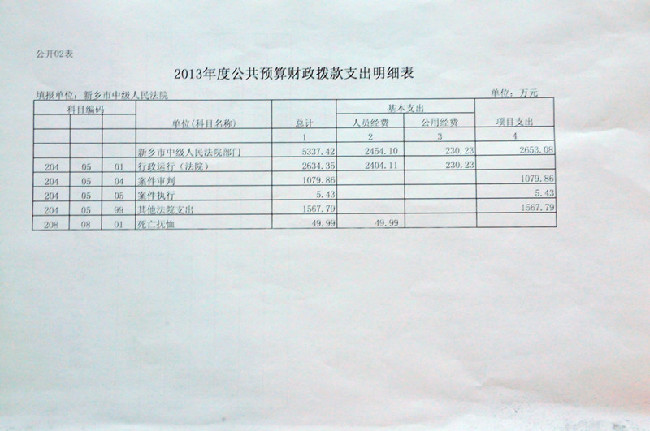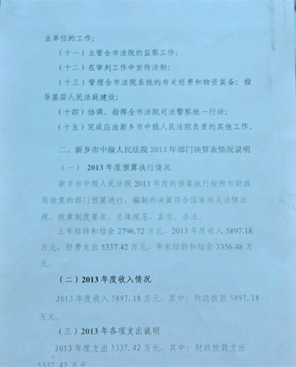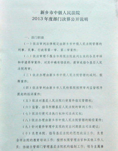 新乡市中级人民法院2013年度部门决算公开说明