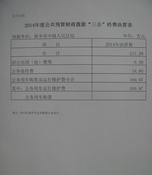 第二部分 河南省新乡市中级人民法院2014年部门决算情况说明