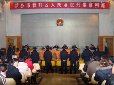 12月11日,新乡市牧野区人民法院刑事审判庭传出一声清脆的法槌声,以章之银为首的涉嫌组织、领导黑社会性质组织、抢劫、非法拘禁、敲诈勒索犯罪的9人团伙开庭受审。