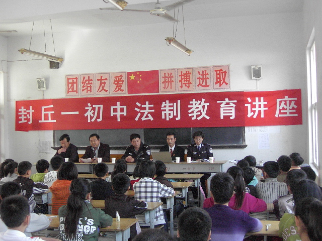 当前,未成年人犯罪呈现高发趋势,预防和减少未成年人犯罪发生已成为全社会共同关注的问题。共青团封丘县委、县委政法委、县教育局十分重视未成年的法制教育工作,每年都要邀请政法机关的工作人员,开展送法到校园活动,起到了较好的宣传教育效果。在报告中,徐主任以丰富的法律知识结合大量生动而又令人警醒的案例,做了题为“苦涩的泪缘何流在花季”的报告。徐主任结合当前未成年人犯罪的特点、现状,给一初中的师生深入浅出地阐释了什么是违法和犯罪,并以丰富的生理学、心理学、犯罪学知识与现行法律相结合,分析了未成年人犯罪的原因以及未成年人不良行为的现实表现。同时针对原因和现状,提出了如何加强未成年人犯罪的预防和自我防范问题,具有针对性强、切实可行等特点。