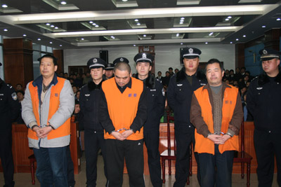 因对银行安排工作不满,河南省新乡市一ATM机管理员竟利用给ATM机加款之机,将95万元巨款席卷外逃,最终难逃法网。12月26日,河南省新乡市中级人民法院一审做出宣判,被告人刘国俊犯贪污罪,判处有期徒刑十五年。与之同时,分别判处两名协助他犯罪的被告人马长戈犯贪污罪,判处有期徒刑十年;刘其新犯掩饰、隐瞒犯罪所得罪,判处有期徒刑二年六个月,并处罚金人民币十万元。(图为:三名被告人在接受宣判,右一为被告人刘国俊。)