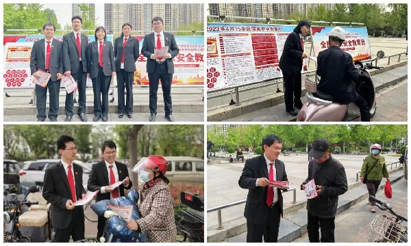 4月14日上午,新乡中院刑二庭组织干警走上街头,摆放主题展板,向过往群众发放宣传彩页,宣传总体国家安全观,宣讲法律知识与政策法规,讲解相关案例,通过以案说法的形式,介绍人们日常生活中如何参与维护国家安全,引导群众积极参与,让国家安全的理念深入人心,实现普法全覆盖,构筑维护国家安全的人民防线。同时,新乡中院通过在官方网站、微信公众号、微博等自媒体推送相关知识,在机关LED显示屏上播放视频、海报,开展知识学习、有奖竞答等活动,推动“国家安全人人有责”的观念深入人心,营造共同维护国家安全的浓厚法治氛围。